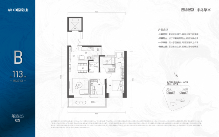 113㎡的3房2厅2卫,设计的是竖厅格局,电梯入户送独立公区,LDKB一体化设计,动静分区,三开间朝南,客厅连接次卧出超大观景阳台,主卧大套间设计,二字型厨房带1个小生活阳台,卫生间干湿分离,得房率:72.07%(不含赠送),西南朝向。