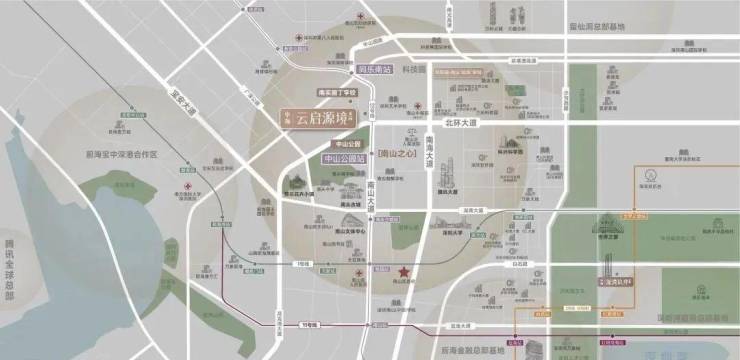 中海云启源境坐落于南山“黄金中轴”,距离前海地王仅2.5km,只需要10分钟即可抵达。