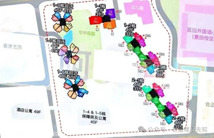 1栋公寓/保障房:1栋5单元(40层);1栋酒店公寓(49层),酒店公寓属于05地块,不会划分在小区内。