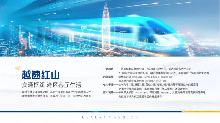 高铁交通:直线距离深圳北站约2.5公里,深圳北站作为深圳核心地铁枢纽,深圳市内一站即可通达福田站、光明城站、坪山站,两站香港西九龙站;