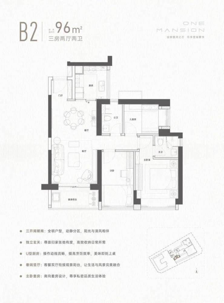 96㎡的3房2厅2卫