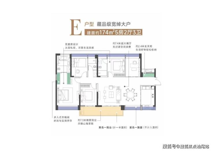1单元:建面约174㎡五房两厅三卫,E户型