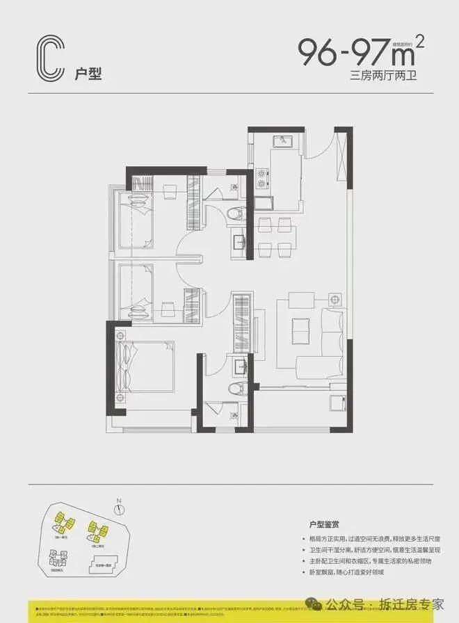 96-97㎡三房两厅两卫