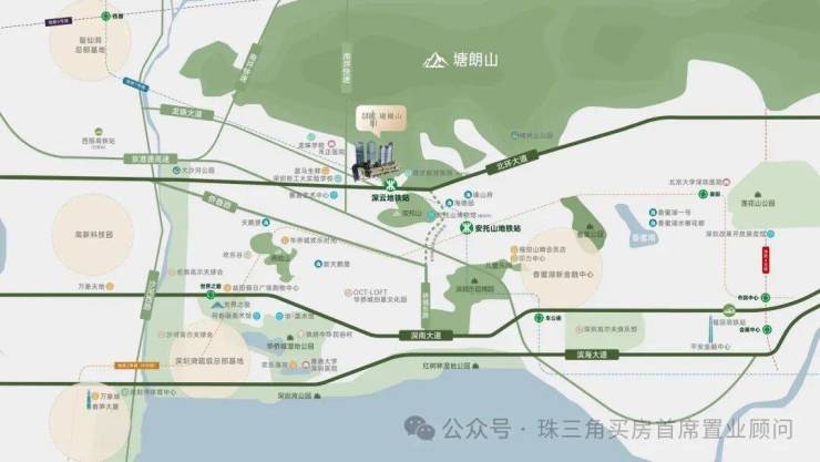 💎项目位于深圳城市发展中轴,塘朗山南麓,安托山豪宅板块。东邻福田金融中心,西连南山高新科技园,南至深圳湾超级总部基地,北接西丽科教城、留仙洞总部基地,占据山海城豪宅禀赋资源。