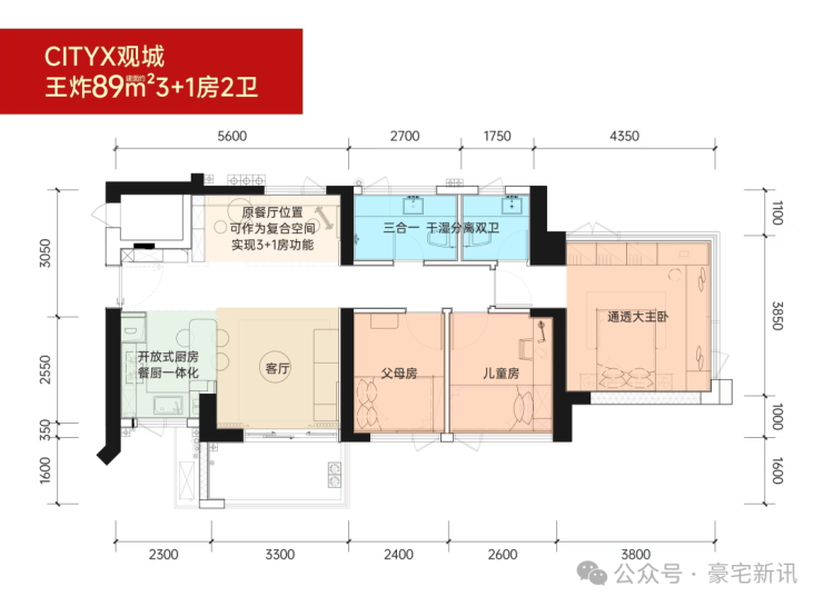 王炸户型 约89㎡3+1房两厅两卫