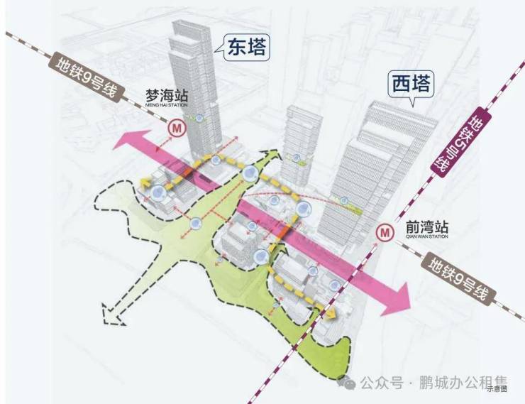 9号线梦海站:下沉庭院直连项目大堂(零距离换乘)