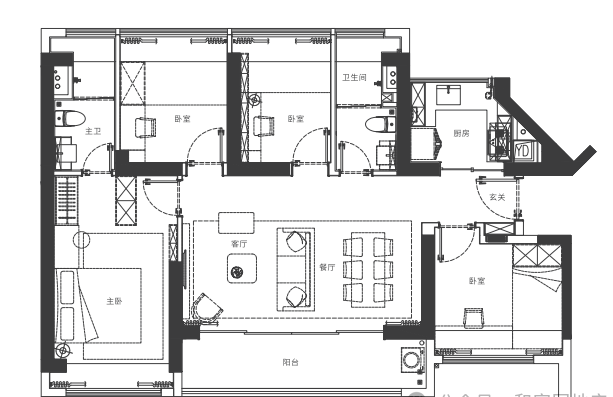 家政阳台定位,满足多人就餐,主卧独立卫生间