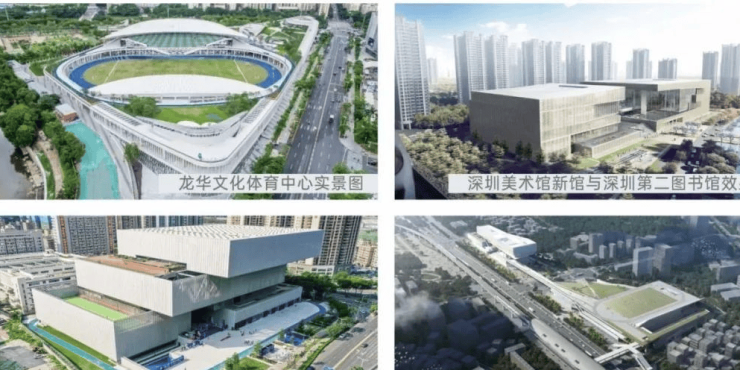 •深圳图书馆北馆、深圳美术馆新馆、演艺中心、展览馆、简上体育综合体、深圳龙华书城、大浪文体中心(在建中)、龙华文化体育中心