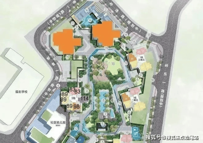 总规划2136户,其中1栋2/3单元为3梯6户,其它栋数均为3梯7户设计,地下4层,规划停车位2343个,车位占比1:1.1。