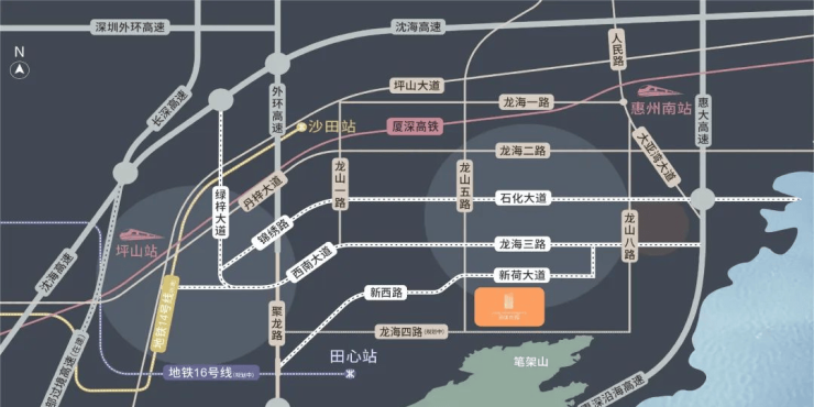 项目位于比亚迪板块,对于需要深惠通勤的客户来说,不是很合适,毕竟这个盘也不是主打交通配套的,去到临深沙田站开车要二十多分钟,但是出行的话还是方便的