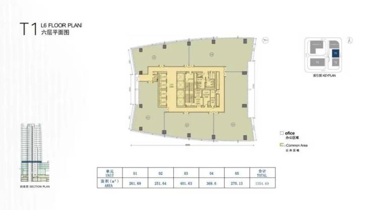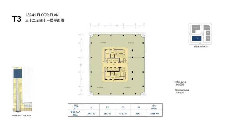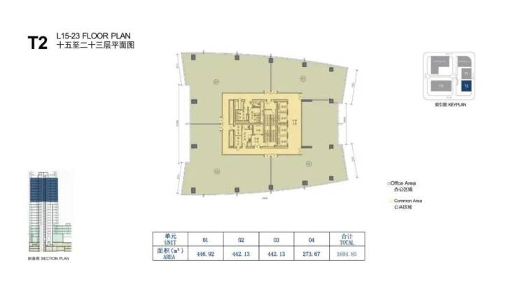大厦高度:T1/T2栋约100米(地上23层,地下3层);T3栋约200米(地上41层,地下3层)