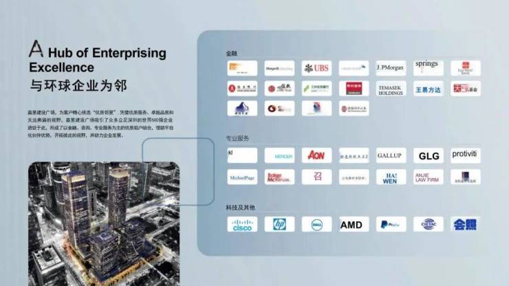 凭借超甲级标准的优质设施、专业服务、综合业态以及无远弗届的广阔视野,嘉里建设广场云集了众多世界500强企业,形成了以金融、咨询企业为主的优质租户组合,充分发挥集群效应,形构国际化的顶级商务圈层。在此基础上,嘉里建设广场还精心运营多元文化商务社区,为入驻企业家提供高效、专业的交流平台,丰富的商业经验、前沿的经营理念和独特的创意灵感沉淀为稀缺性资源和软性资本,助力企业更高质量、可持续的发展,以先驱者和助力者的姿态,守护深圳过往的成就与荣耀,共筑深圳未来的繁荣与昌盛。