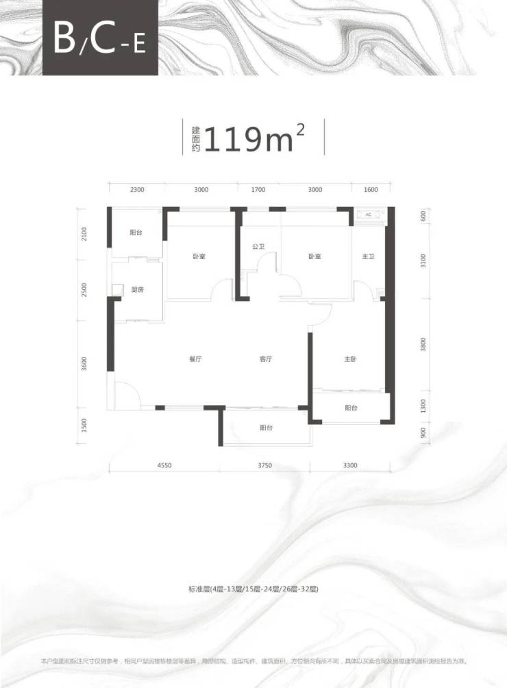 C栋B/C/D/E户型、约100㎡两房两厅两卫),118-119㎡三房两厅两卫