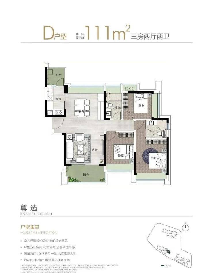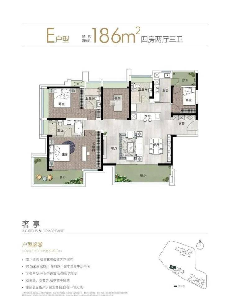 6月份开盘,户型91-123平三至四房,折后均价约7.45万/㎡。