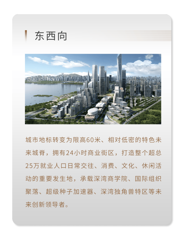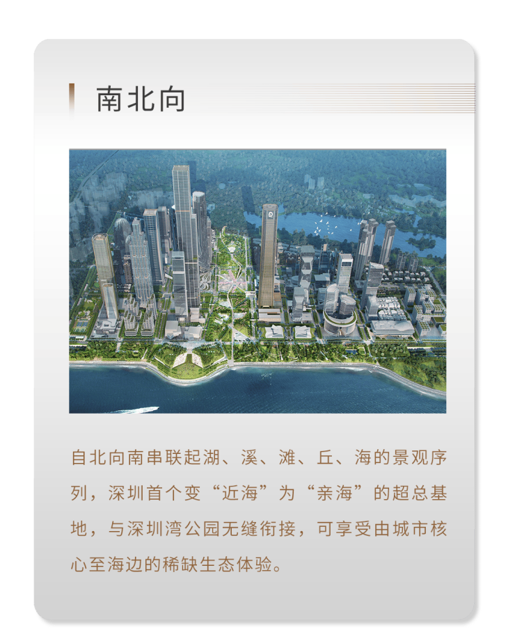 深圳湾超级总部基地是深圳发展成为世界级城市的功能中心,由常务副市长领衔的专门机构负责统筹建设,打造集全球总部集聚区、都会文化高地、国际交流中心、世界级滨海客厅于一体的未来城市典范。