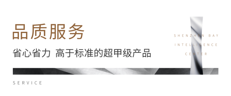 作为万科集团和深铁集团的标杆之作,SIC为企业客户提供高于标准的超甲级写字楼专业配置和高品质服务。