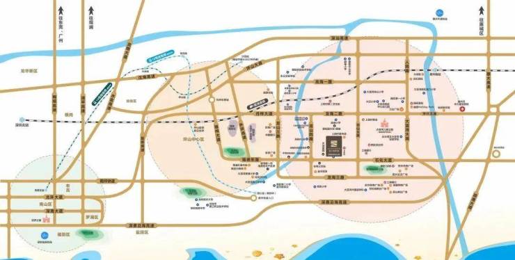 项目位于石化大道旁,项目在交通方面的优势为地段优势,属于居间地段,去往深圳大概五公里多就是地铁沙田站,开车十五分钟到二十分钟就是高铁站惠阳站,去往坪山,福田,深圳北,都比较方便
