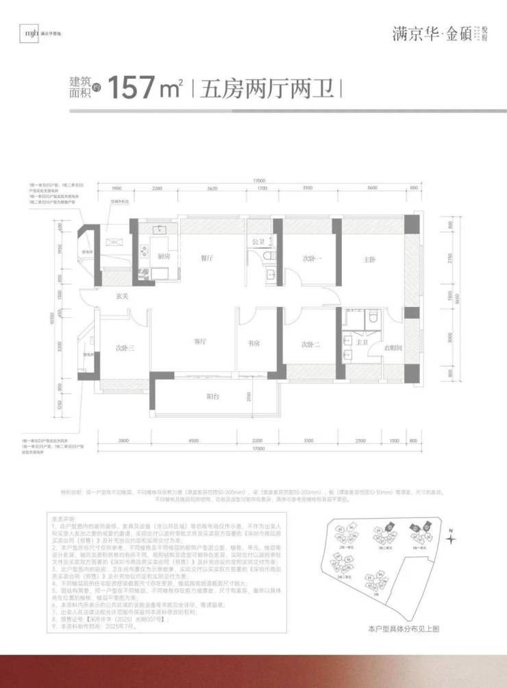 ,由满京华集团打造,总占地面积约2.61万㎡,总建筑面积约21.8万㎡,计容建筑面积约15.53万㎡,容积率5.95,绿化率30.01%,共由5栋32-48层高的住宅组成,其中1栋1/2单元住宅48F,2栋1单元住宅32F,2栋2单元住宅47F,3栋住宅48F,4栋是1所幼儿园,还配建有社区菜市场。
