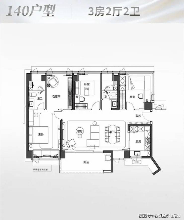 南向10㎡大阳台(长超6.5米),家政/赏景/小花园多用。三卧室空间充裕,无飘窗也能轻松放床柜桌。