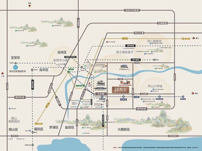 2城轨:深大城际坪山站约4KM(在建中)、近深惠城际大鹏支线,通达大湾区。
