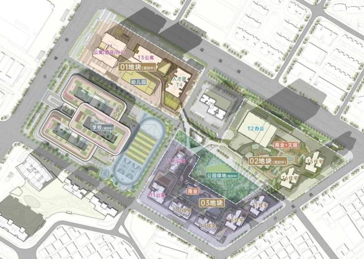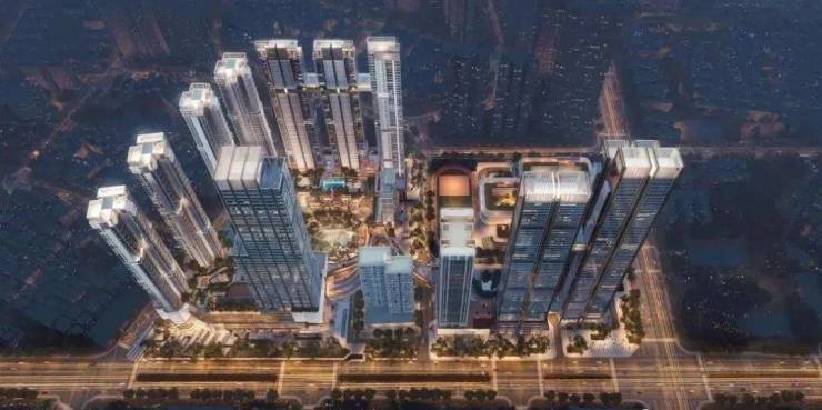 项目占地面积约2.18万㎡,规划总建面面积约32.3万㎡,由5座超高层+1座小高层建筑,外加一个下沉休闲广场及环广场裙房商业组成。
