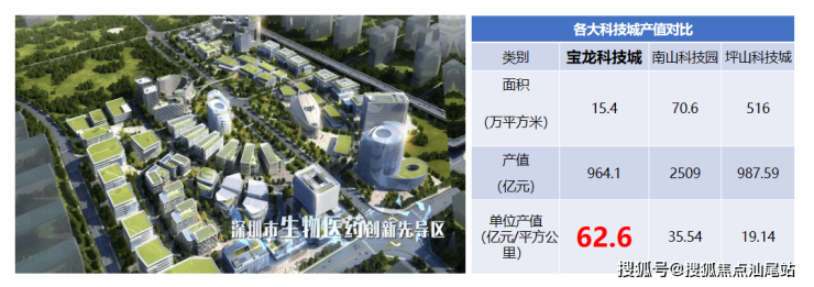 三大核心产业:ICT(信息通信)、ALoT(人工智能+物联网)、BT(生物技术),现产值约2倍于南山科技园的单位产值,潜力无限。