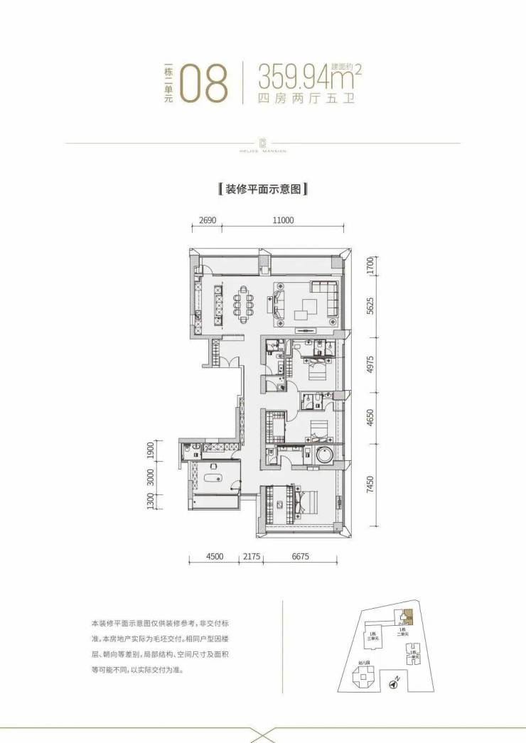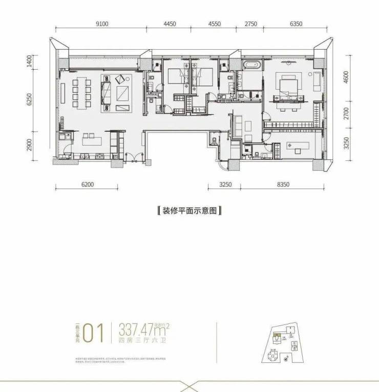 【建面约337平4房全套房+1工人房3厅6卫】