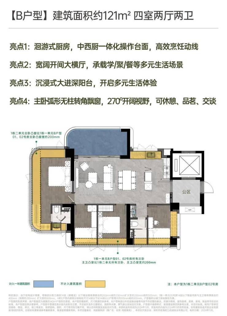 建面约142㎡南北方厅 阔景四房;