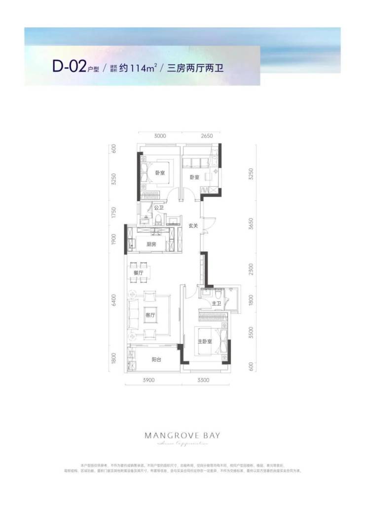 D02户型114平3房2厅2卫设计参考
