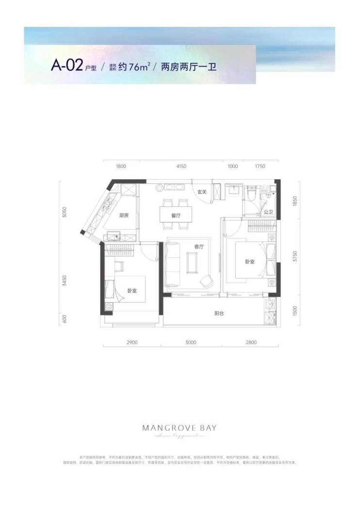 A02户型76平2房2厅1卫设计参考