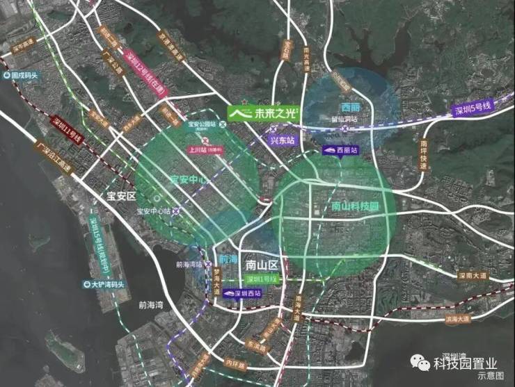 万科未来之光位于深圳宝安、南山双核交汇处,临近南山科技园、留仙洞总部基地、宝安中心、前海自贸区等片区,得天独厚的位置,让片区享受到来自四大城市高地的辐射。
