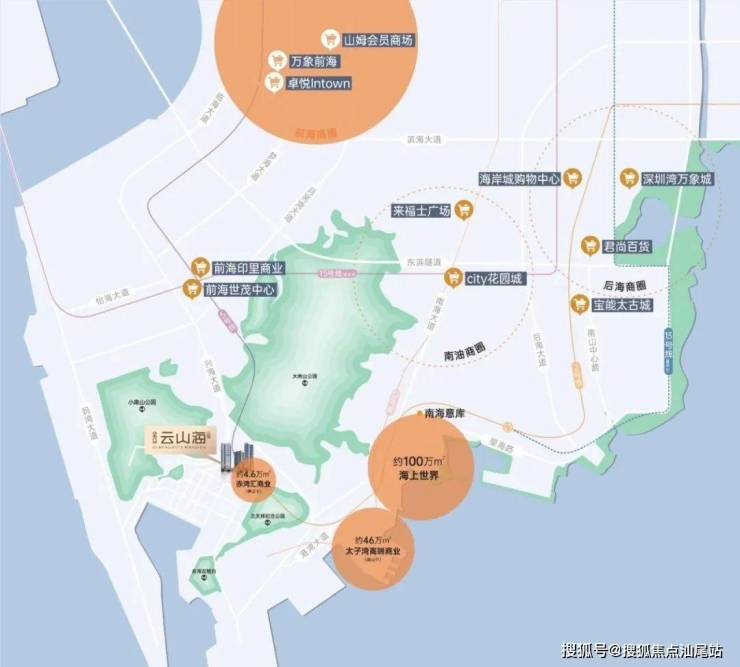 金众.云山海 坐落于深圳市南山区蛇口招商街道赤湾六路与港航路(郑和一路) 交汇处,项目共两个地块(宗地号K104-0043、K104-0044),总用地面积约3.6万㎡,规划总建筑面积约19.5万㎡,其中计规定建筑面积约19万㎡,包括住宅、商业(800㎡)和幼儿园等配套用房。