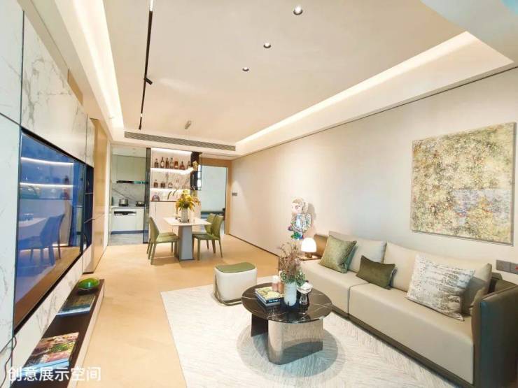 随着此次创意展示空间的开放,中洲·迎玺的公园纯居奢邸样板,也向深圳展示了它媲美全球奢邸的高端品质人居。考究的空间尺度和精心打磨的空间细节,低饱和度的色系运用,搭配充满艺术感的软装以及柔和暖心的光线,呈现倍具前沿风范又无惧时间的经典。
