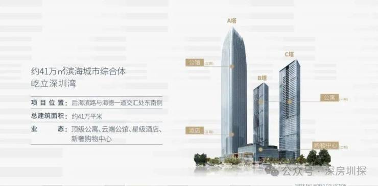 恒裕深圳湾是深圳湾最后一块含可售公寓指标的商务综合体。项目位于后海滨路与海德一道交汇处,占地面积约2.5万平米,总建筑面积约41万平米,主要由三栋超高层建筑以及集中商业组成。