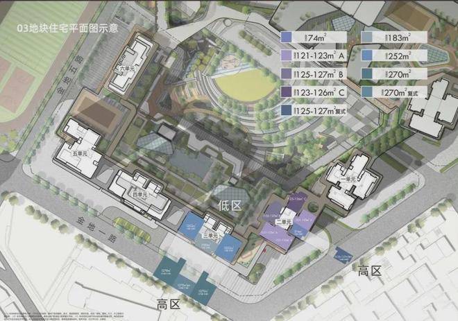 1-2单元为总高60层的商品住宅楼,4梯6户;