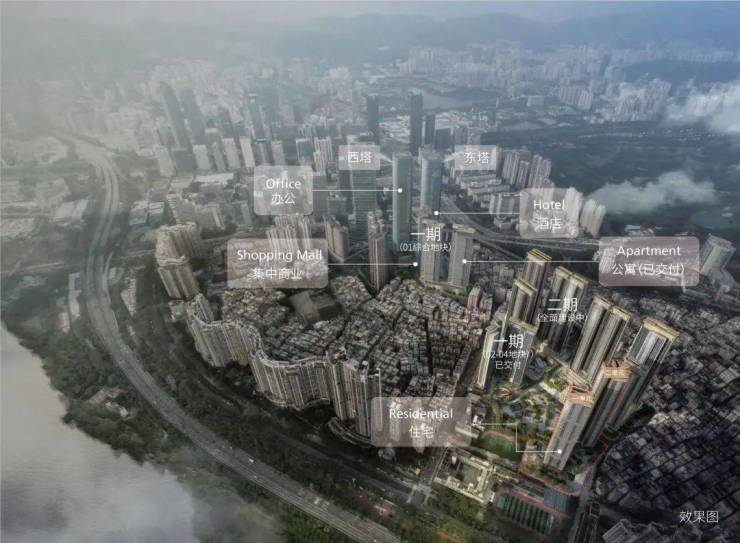一二期建面约126万㎡全系业态滨海综合体,涵盖超甲级写字楼、高端酒店、精品公寓、海幕住宅、购物中心、公园式街区多种业态。目前一期住宅公寓已售罄入伙,一期约8万㎡商业即将开业,40%的品牌都是首次进入深圳或者华南地区,华南区首家茑屋书店、寰映IMAX未来概念店,华南区首家teamLab未来游乐园等