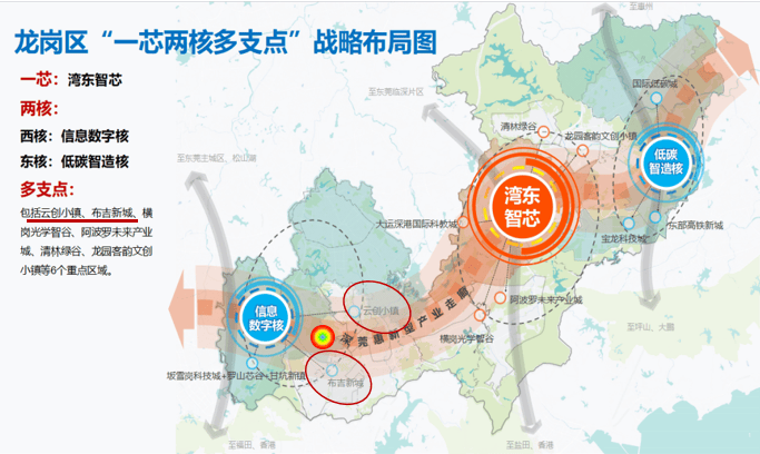 位踞东进战略与布吉超级城市中心,湾区科技创新聚集地,坐拥坂雪岗科技城这一核心科技创新平台,手握大运新城、国际低碳城等多个创新节点,打造信息数字产业与城市栖居功能融合的活力新城。