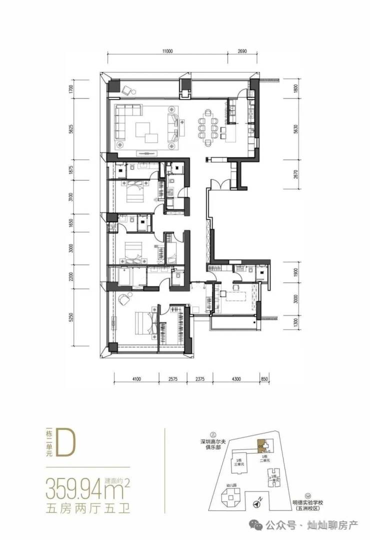 360㎡大平层:五房五卫、中西双厨,45层以上私梯入户,定位顶豪。