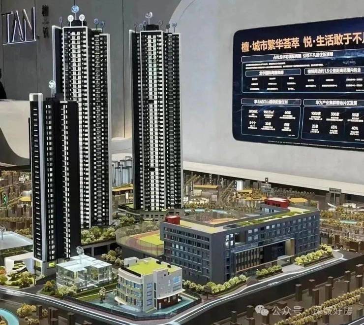 檀悦府,项目原先是水斗新围山嘴头工业区城市更新,总占地面积约1.6万㎡,总建筑面积约19万㎡,计容建筑面积约14.1万㎡,容积率8.3,绿化率40.12%。