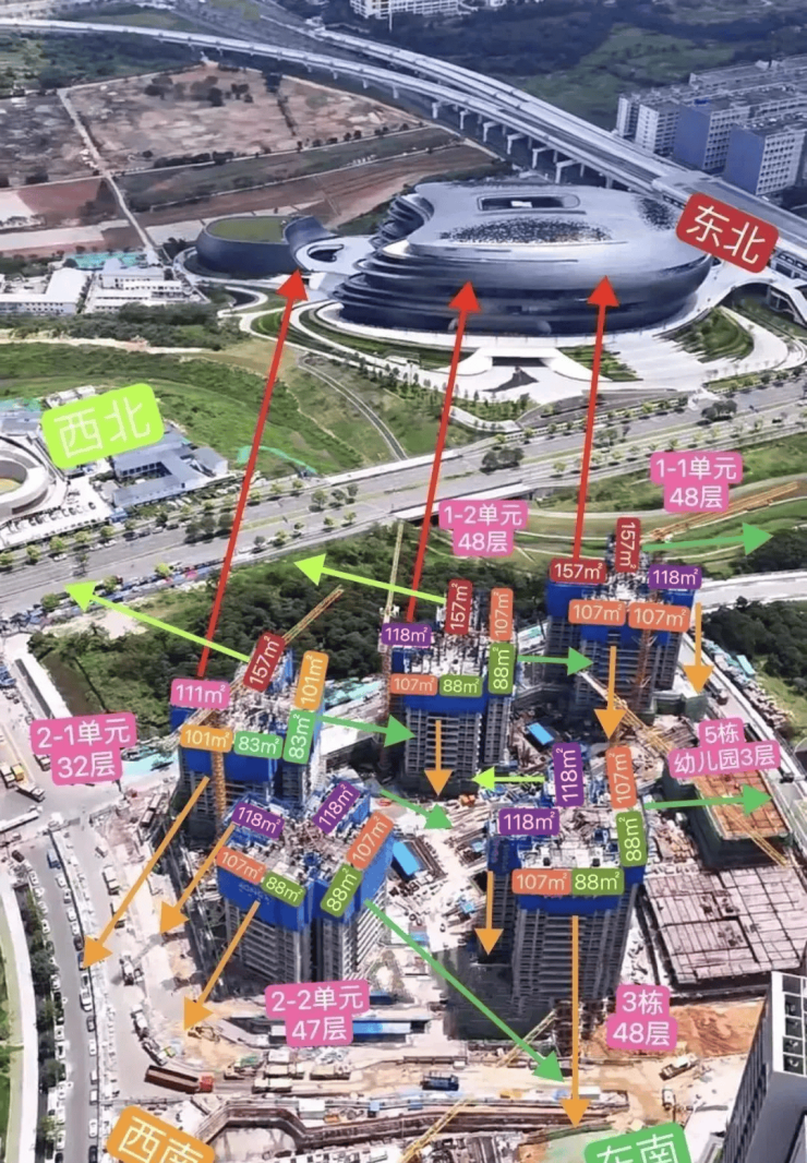 满京华金硕悦府,由满京华集团打造,总占地面积约2.61万㎡,总建筑面积约21.8万㎡,计容建筑面积约15.53万㎡,容积率5.95,绿化率30.01%,共由5栋32-48层高的住宅组成,其中1栋1/2单元住宅48F,2栋1单元住宅32F,2栋2单元住宅47F,3栋住宅48F,4栋是1所幼儿园,还配建有社区菜市场。