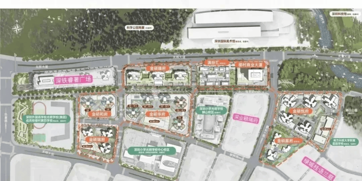 最值得一提的是满京华金硕臻府西侧约200米规划有1所深圳外国语楼村第四学校,已经对外官宣,深圳四大名校之一,计划是在2025年首次招生,该校也是在学区范围内,是1所九年制公办学校,规划45个班,有2100个学位。