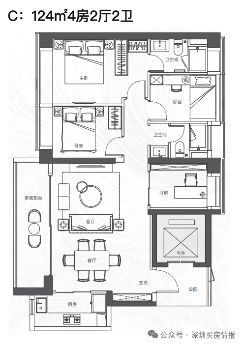 该项目将推出大约380套住宅,建筑规划包括2栋塔楼,其中高区采用4梯4户的设计,低区则为5梯5户,确保了每户都能享有独立电梯厅的配置。