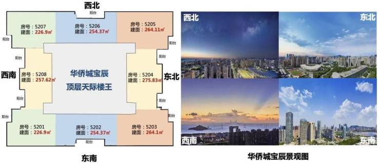 华侨城宝辰总高230米,为宝中最高楼;项目52层,分为中区、高区、超高区,6层起卖,11、39F为避难层,25-26F为空中会所,28F为空中大堂。除了空中大堂项目还有地下入库大堂+首层大堂,一共三重大堂。