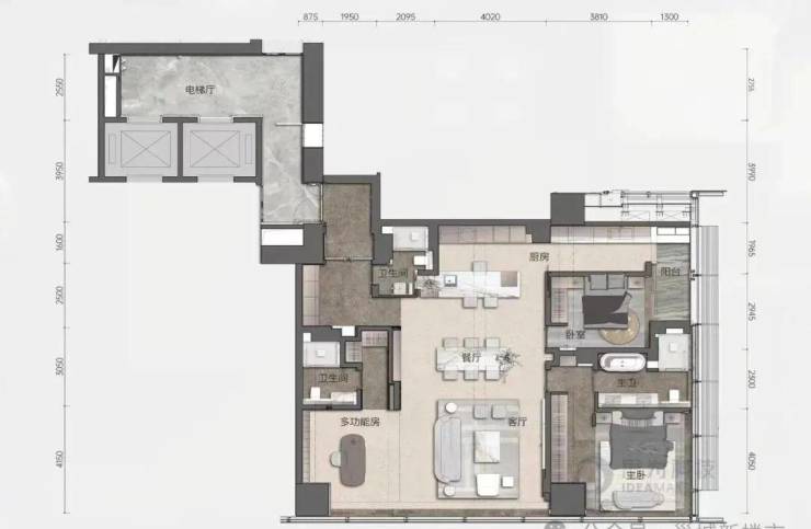 功能:集商业、办公、公寓、云端会所于一体,包含天幕藏品(125-280㎡)、顶复(227-276㎡)及商墅(718㎡)产品。