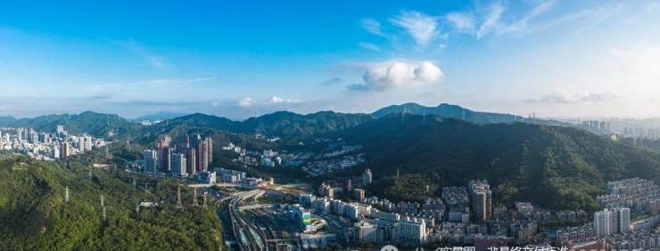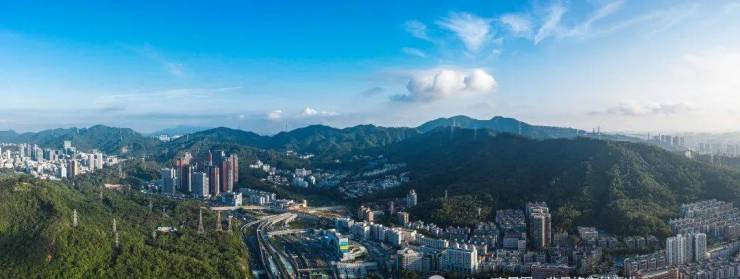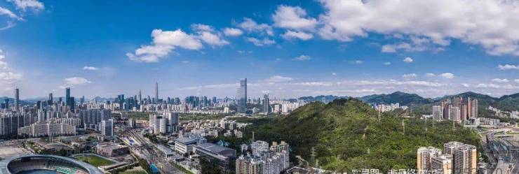 俯瞰银湖山、笔架山公园生态景观、拥福田、罗湖CBD城市中轴景观 。