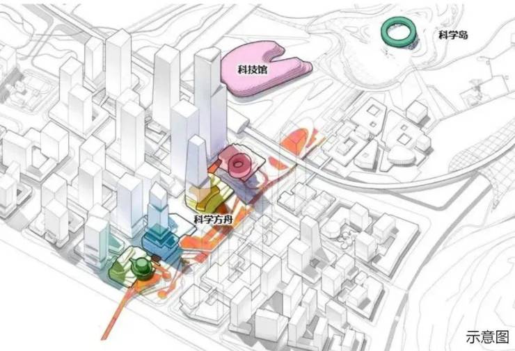 《光明区十四五规划》提出:依托 光明站 TOD 开发,高强度开发形成垂直城市簇群,围绕站点建设“一岛一园三中心”,配套建设一批商业综合体、高端写字楼、高端商务酒店,打造集合科学展馆、国际会议中心、交通枢纽和休闲中心于一体的“科学方舟”。