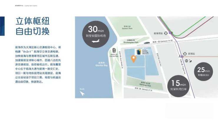 前海作为大湾区核心交通枢纽中心,将构建“9+2+1”陆海空立体交通构架,加快前海与香港等湾区城市互联互通,加速链接全球核心城市,四通八达的先进交通规划,助您愉悦出行。