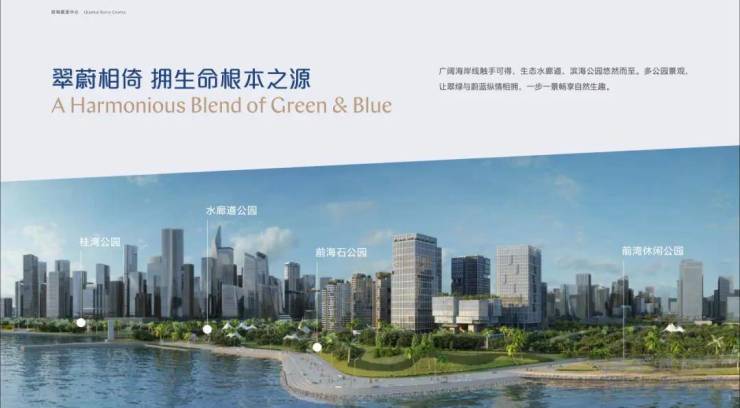 广阔海岸线触手可得,生态水廊道、滨海公园悠然而至。多公园景观,让翠绿与蔚蓝纵情相拥,一步一景畅享自然生趣。