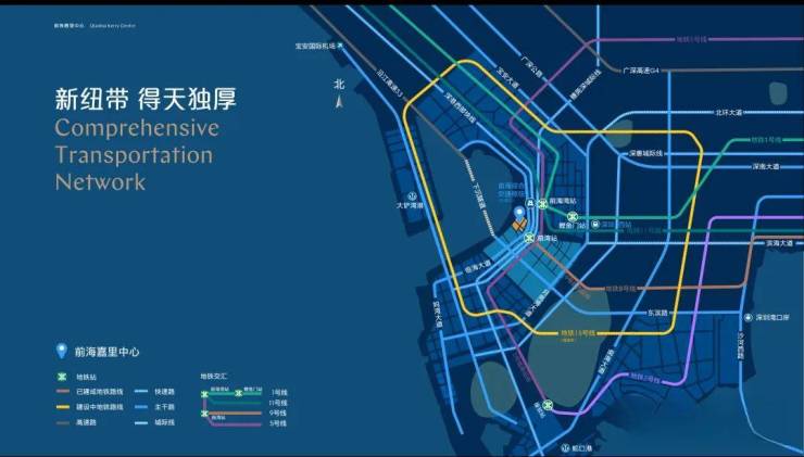 前海嘉里中心位于临海大道与前湾一路交汇处,项目一期与地铁前湾站无缝接驳,前海公交总站设于项目三期,地面与轨道交通自由切换,快速到达 。