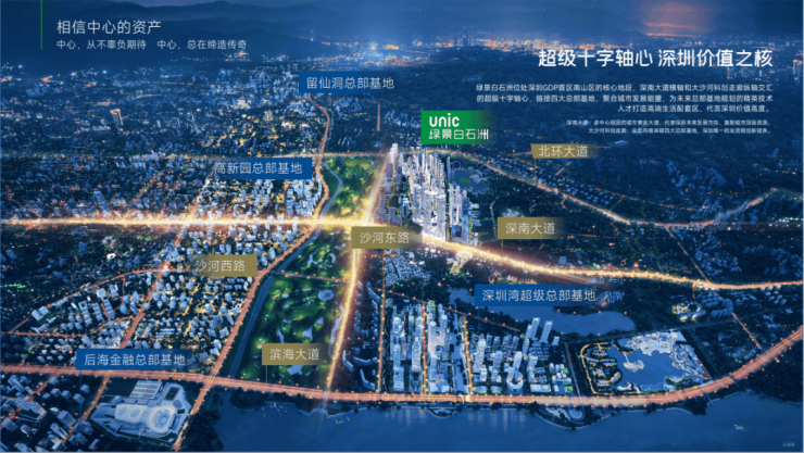 这两条轴线,一条代表了深圳崛起的辉煌历程,一条启迪着深圳智造的未来方向,而处于“十字轴心”的绿景白石洲,就是“深圳南山”走向“世界南山”的最后一块拼图。